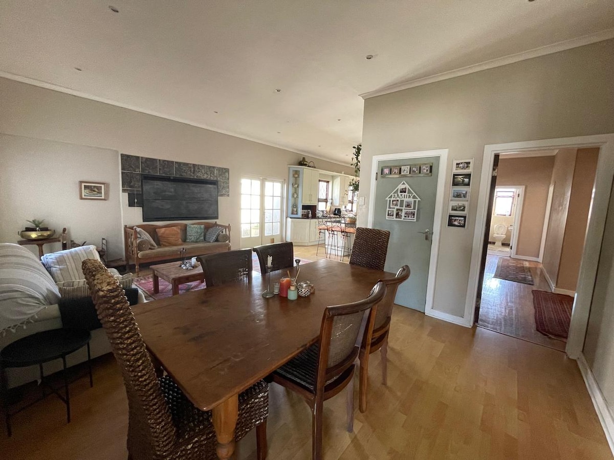 Experience the perfect blend of nature and comfort with your own swimming pool at our small family farm. You'll be surrounded by wild peacocks, free-range chickens and donkeys. Plus: - FREE 28-Page Garden Route Travel Guide - When you book with us, you’ll receive our exclusive Travel Guide full of hidden gems, activities, national parks, and extra safety and travel tips for your journey. - Homemade Breakfast Incl. - 2min Drive to 1# ranked Beach in Town - 1min Drive to Golf Club with Zebra's
