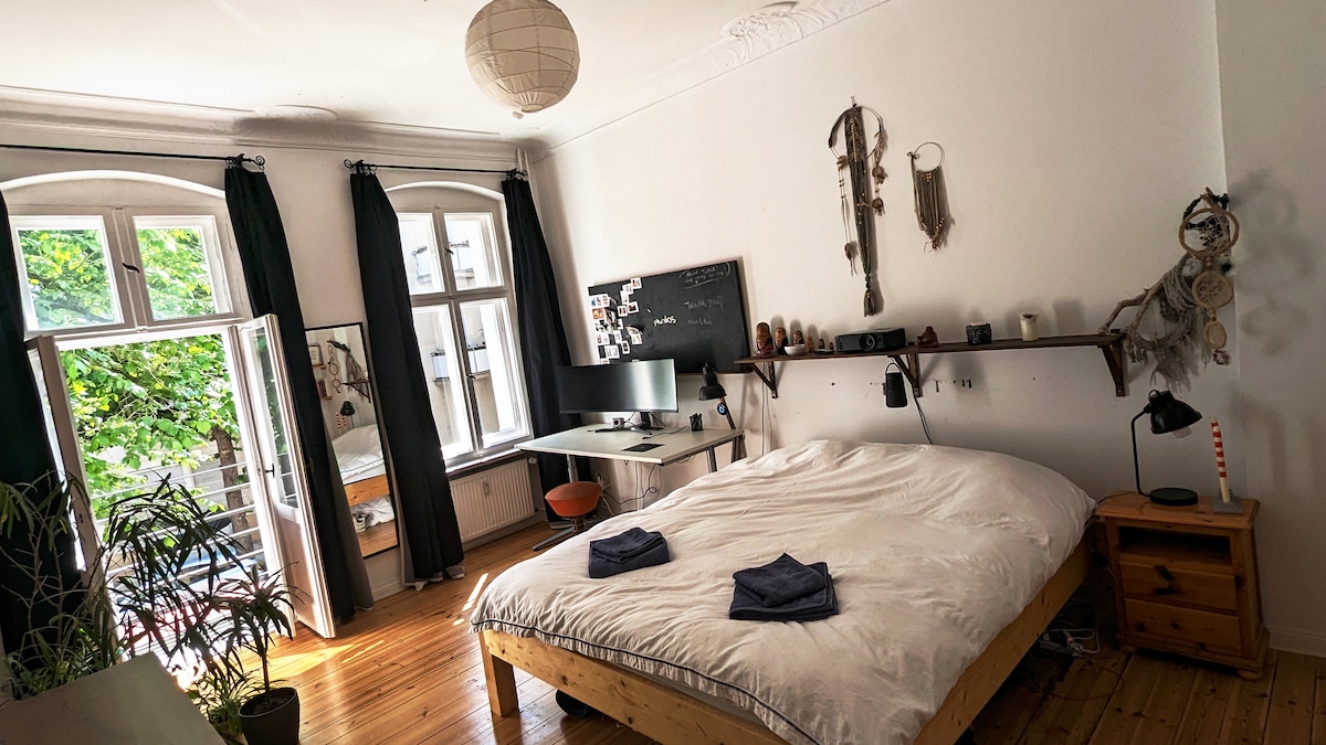 Willkommen in meiner schönen hellen Wohnung im Herzen Kreuzbergs. Das große Wohnzimmer hat eine offene Küche, einen Balkon und eine Heimkinoanlage mit Beamer. Direkt über der Wohnung ist eine große gemeinschaftlich genutzte Dachterrasse. Cafés, Restaurants und Einkaufsmöglichkeiten sowie der U-Bahnhof Südstern sind direkt vor der Tür. Nebenan befindet sich der Volkspark Hasenheide. Das einzigartige Tempelhofer Feld ist nur einen 15minütigen Fußweg entfernt.