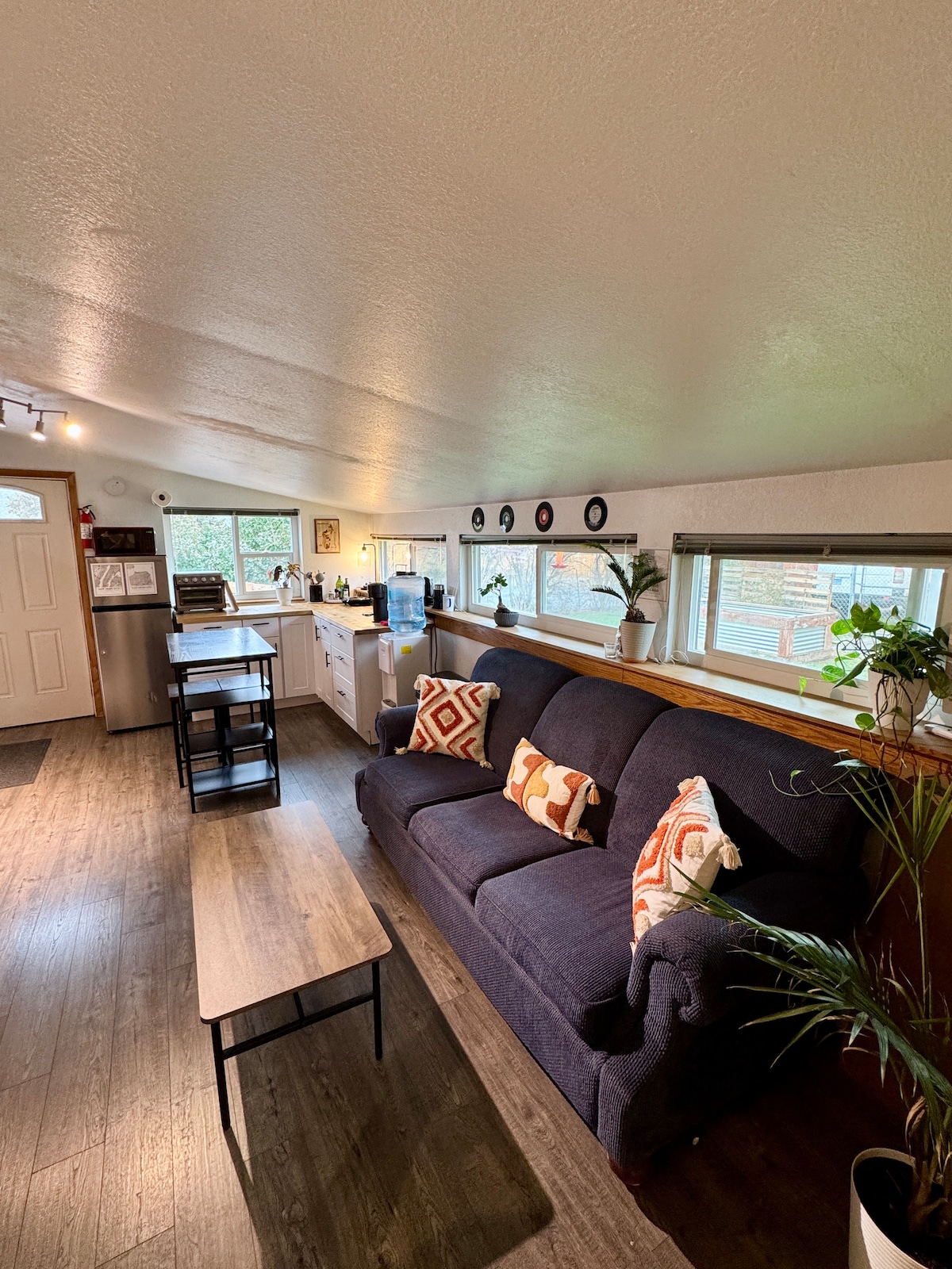 Comfortably sleeps up to 4 guests with a king-size bed and a pullout couch. Located just a few minutes off I-80 in a quiet, safe neighborhood. Enjoy a fully equipped kitchenette with complimentary coffee to start your day. The shared, fully enclosed backyard features a lockable dog door for your furry friends. Note: There are 4stairs leading to the bathroom, and the only sink is located in the bathroom