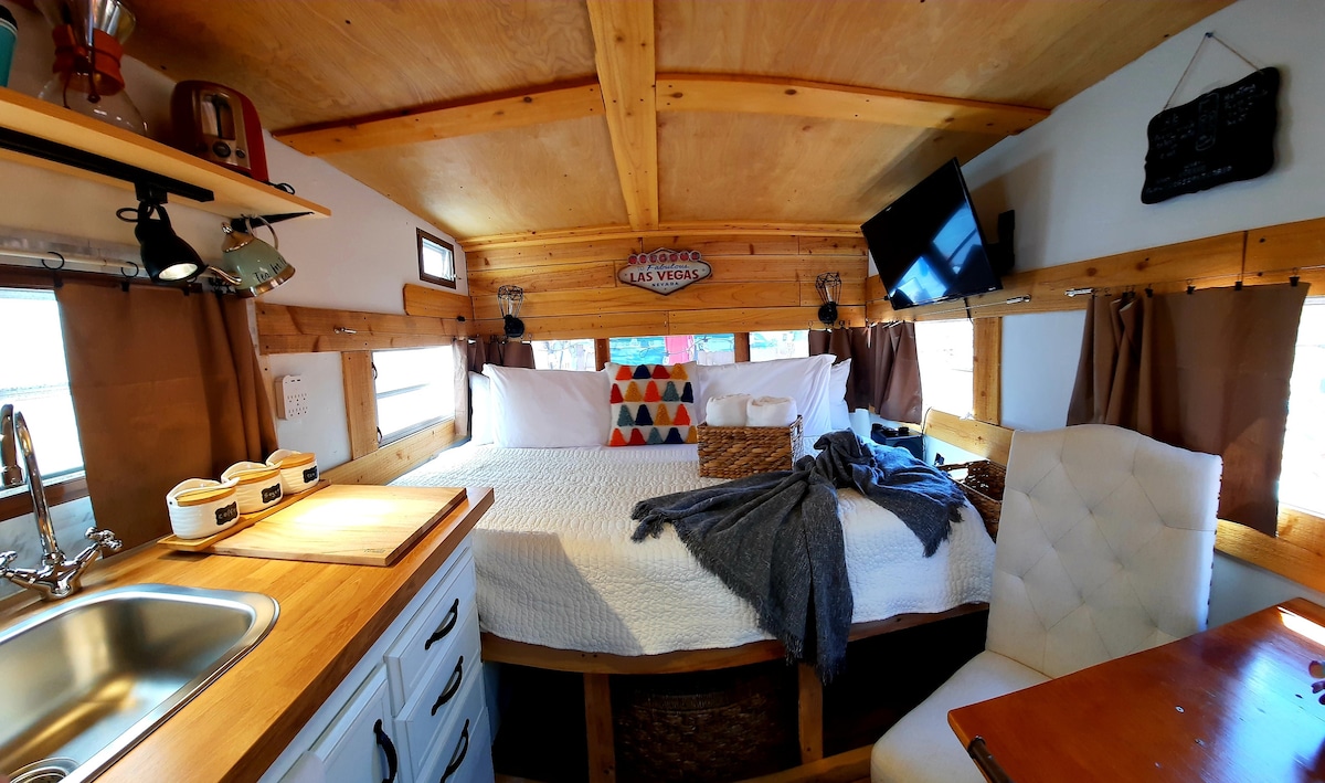 Feel at peace in this modern camper. Enjoy the ease of self check in with 1 FREE parking included right next to the Airbnb. WIFI included with every stay. Located only 5 minutes from Harry Reid International Airport, 15 minutes from the famous LV STRIP and ALLEGIANT STADIUM PLEASE READ HOUSE RULES BEFORE BOOKING ♡