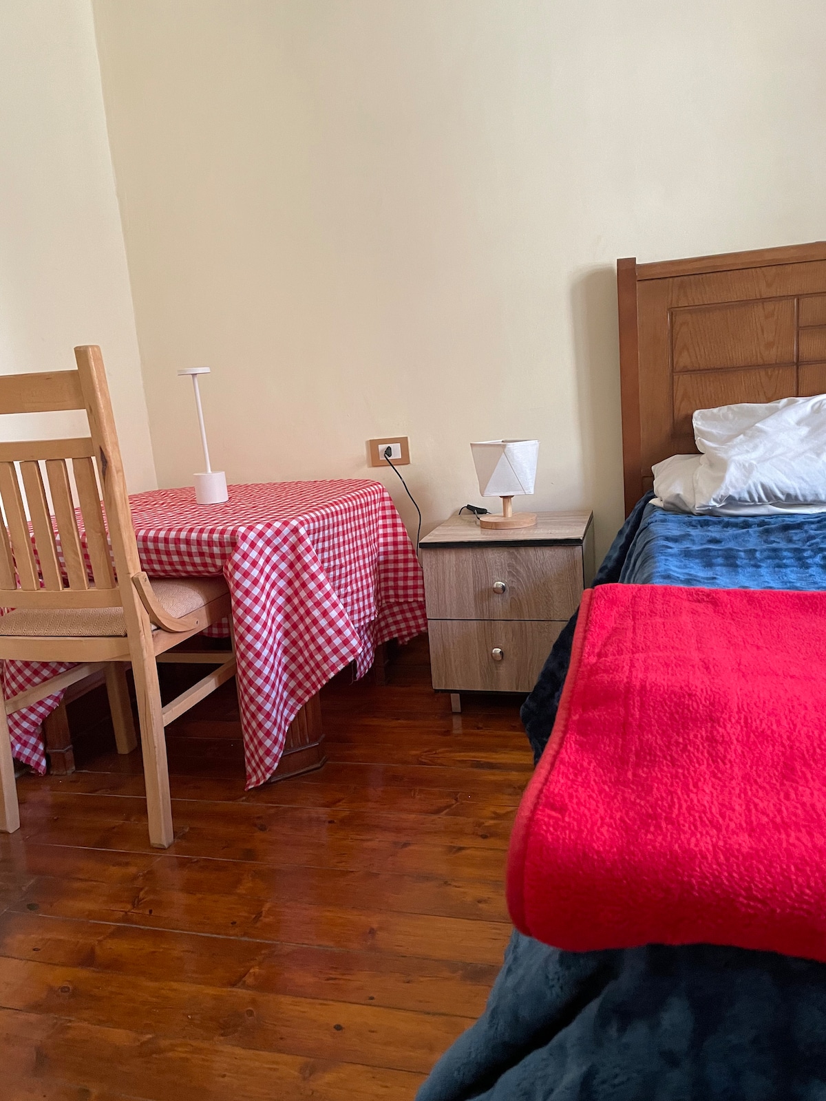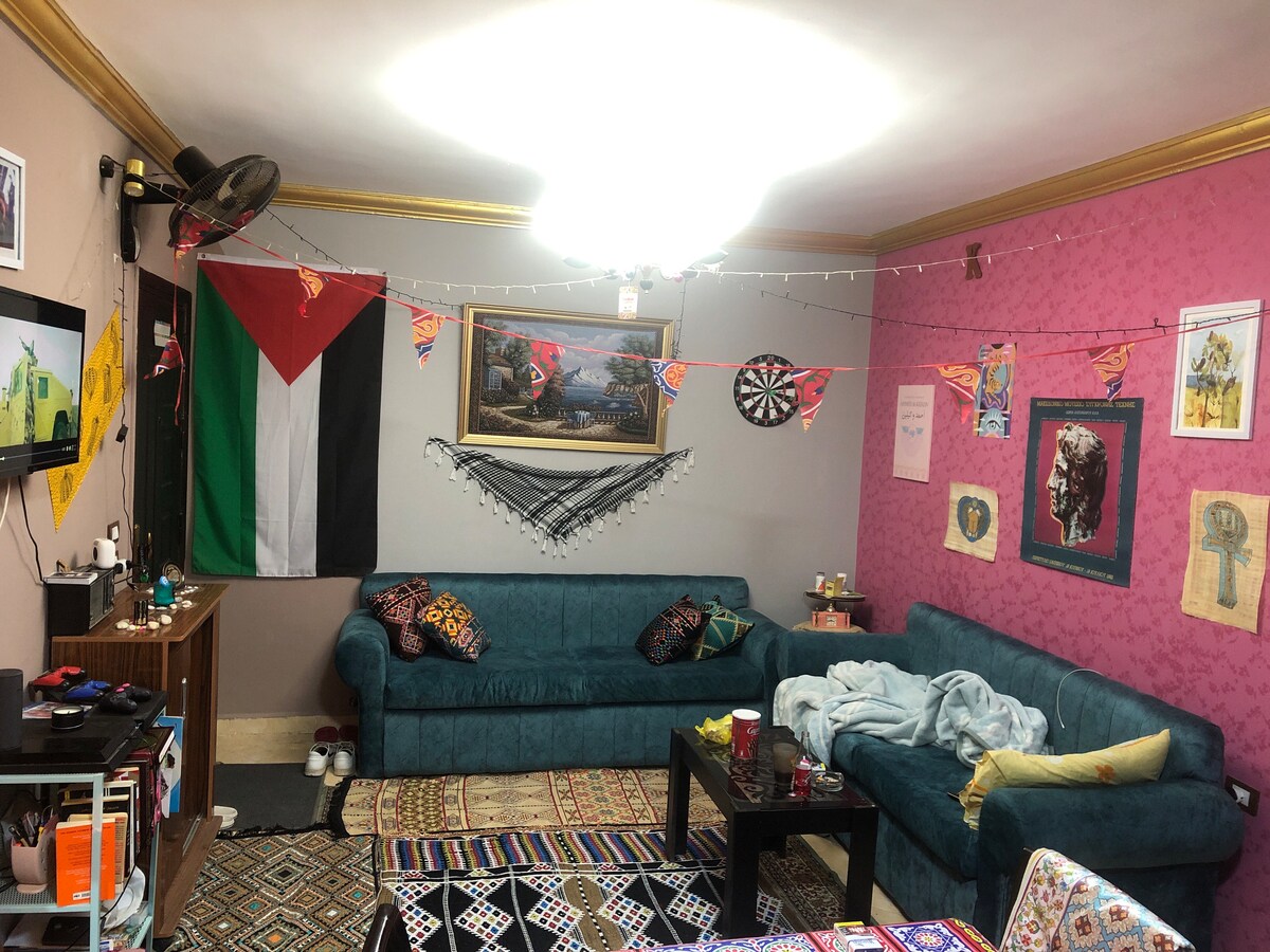Our place is close to the American school in Maadi, a green suburb of Cairo, which is much more quiet than the hubbub of downtown. You can access shops and restaurants by foot or any place further away by taxi or Uber. You’ll love our place on the top floor of our building. In front of the room you can enjoy a large, private terrace, from which you can admire bright red sunsets over the rooftops after a busy day touring Cairo. Our place is good for solo adventurers and business travelers.