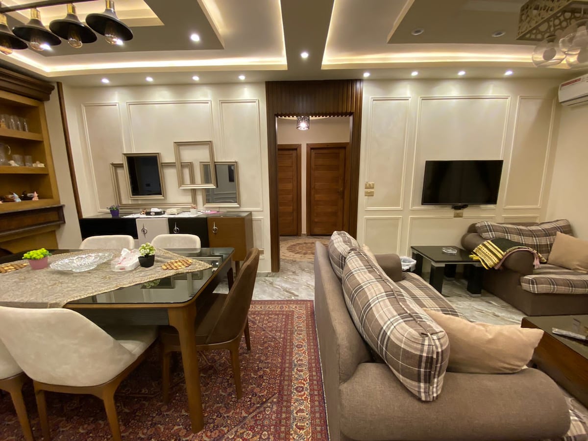 Luxurious aprtment in the cozy neighborhood of Nasr city, 5 mins to City Stars mall, 10 mins to Almaza city center mall and 20 mins to the airport. The apartment is recently renovated, and fully furnished with AC units for all living spaces. 1 master bedroom with bathroom, 2 bedrooms, 2 bathrooms, living room and spacious reception The building has two elevators serving the place.