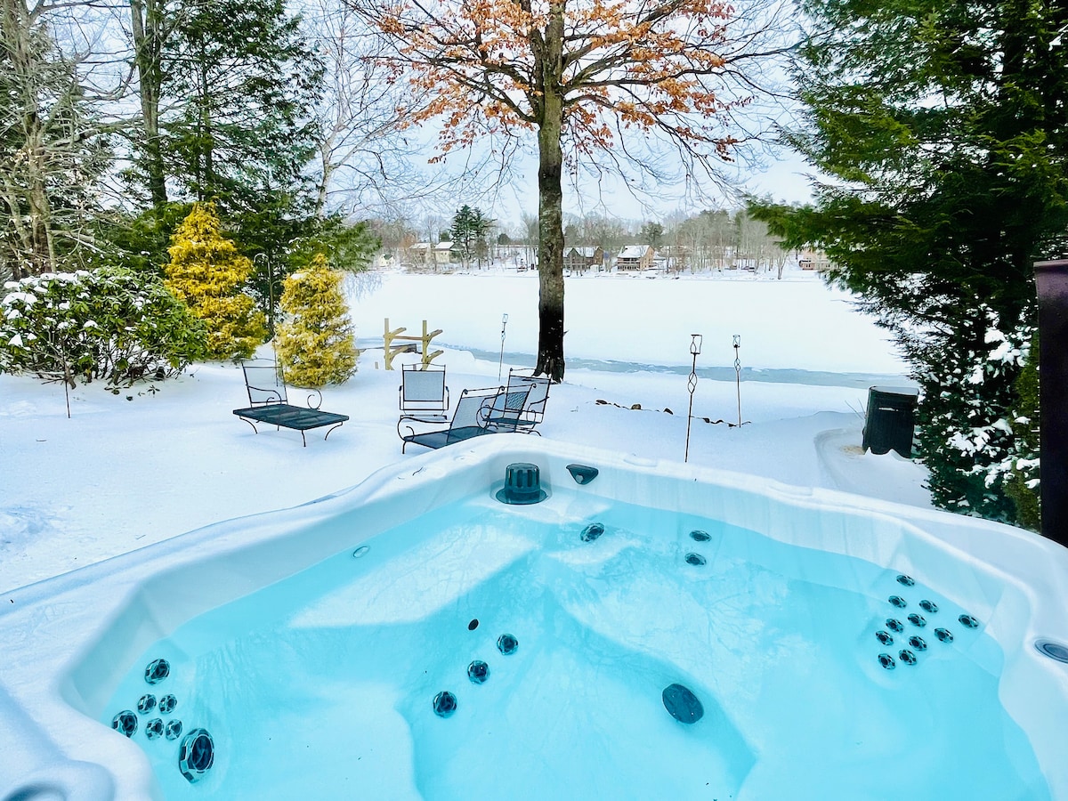 风景秀丽的湖泊和滑雪度假木屋:热水浴缸和梦幻般的景观