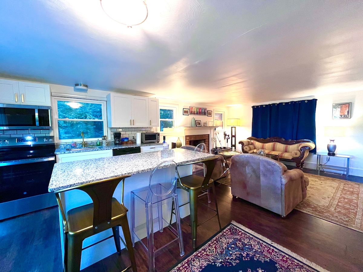 Welcome to our serene waterfront cottage in Newtown CT! This tiny cottage totals 608 sqft (304 sq-ft up and down). Thoughtfully designed to be ideal for a solo getaway or a couple retreat. At our tiny cottage, you may wind down at the spa or relax over a hot/ cold beverage at the upper level deck while bird watching or observing several water vessels as they ride by in warmer weather. If you fancy water activities, you may choose to ride in our 2 seater kayak or roast s’mores by the fireplaces.