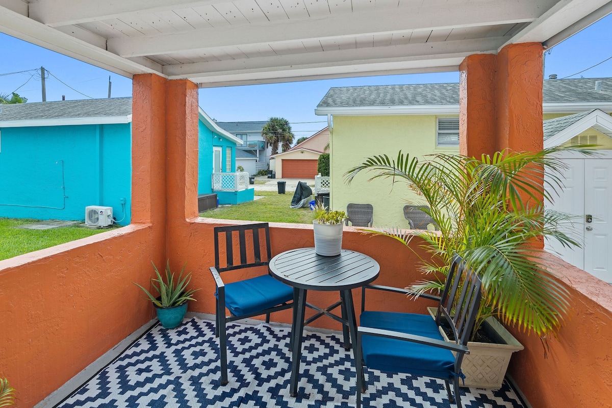 Weekly and Monthly Discounts. Namaste Here is the south side of a chic beach bungalow nestled a stone’s throw away from Flagler Ave in the heart of New Smyrna Beach. Namaste Here boasts a bigger sunning area and private parking for your boat or toy hauler. Decorated in a modern Balinese style, you will enjoy all the comforts of home in a cozy relaxed setting. Each side has its own private porch for sea breeze enthusiasts complete with a bar and outside chairs. Enjoy NSB without driving!