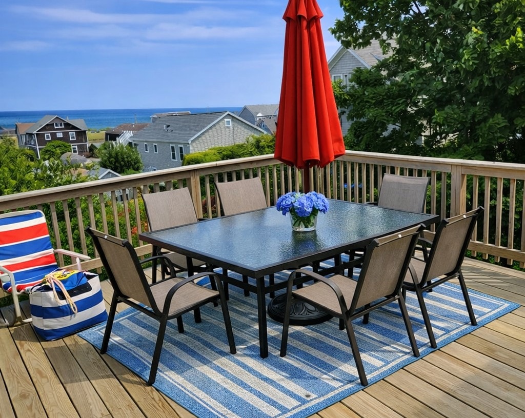 2200 sq ft updated 4 bedroom and 2 bath ranch with central AC in Narrangansett, RI. 2 beach passes to Narragansett Beach are included. The house has been completely updated (new kitchen, bathroom, floors, bench/table). The upstairs has the kitchen (has a dishwasher), family room, dining room, 3 bedrooms and full bath. The downstairs is completely finished and has a large family room, washer/dryer room, 1 bedroom and full bath. 750 sq ft deck with 3 levels and brand new cedar outdoor shower.