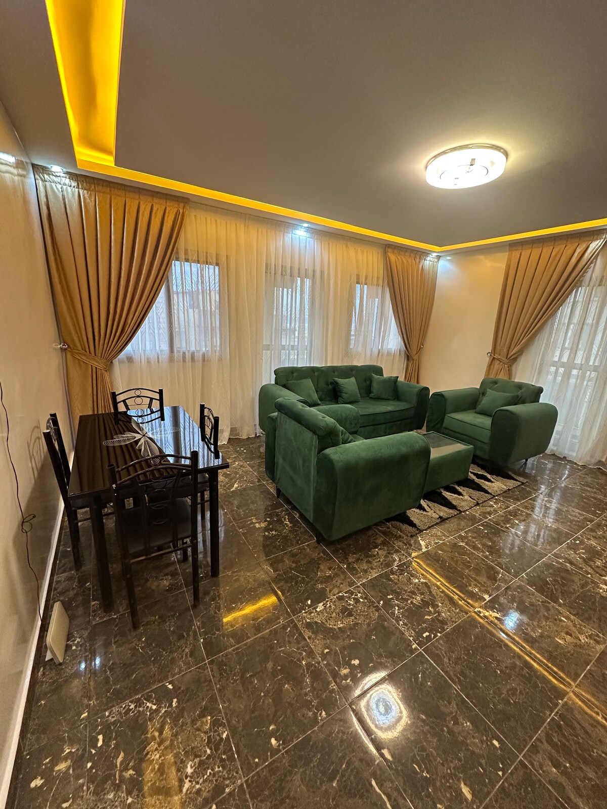Your first impression is "spacious". This 3-Bedrooms, 3.5 Baths apartment is a rare find in Saly. 24-hour security, swimming pool and friendly neighbors are great reasons to choose this property. Apartment is located on ground floor so, guests have easy access. Beaches, golf course, supermarket, restaurants and entertainment are all within 5 minutes from the home.