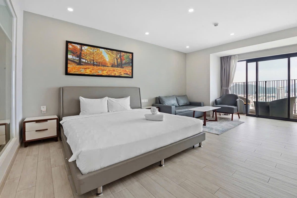 This is my own holiday studio right in the heart of Nha Trang city. It is not just a commercial set up. The building is Panorama. It is high up on 31st floor with city and mountain view and a little bit of sea view. It has one big King bed, the most comfortable sofa, a tiny kitchen, perfect for a person or one couple to enjoy the wonderful Nha Trang.