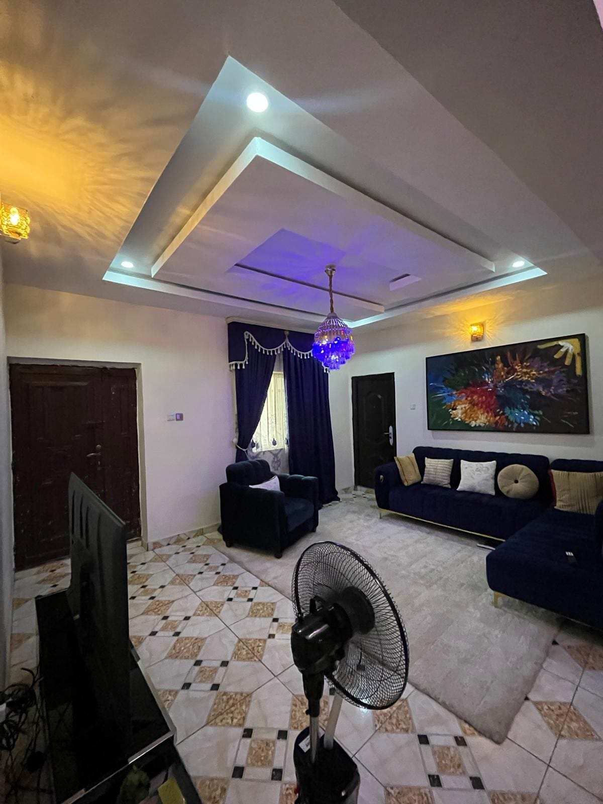 🛏️ 2 Spacious Bedrooms 🛌 2 Beds (Sleeps 4 Guests) 🚿 2 Bathrooms En Suite 👨🍳 Fully Equipped Kitchen 🛋️ Large Living Area 📶 High-Speed Wi-Fi 📺 Netflix & Amazon Prime 🔊 Bluetooth Ceiling Speakers 💡 Ambience & Motion Sensor Lighting 🛡️ 24/7 Security ⚡ Steady Power Supply 🚗 Free Parking 🧹 Free Cleaning Services 🎮 Game Console (PlayStation 5) 👨🍳 In-House Chef on Demand 📍 Convenient Location 🚖 Logistics Available 📩 Message us for early check-in and check-out requests! 🚀