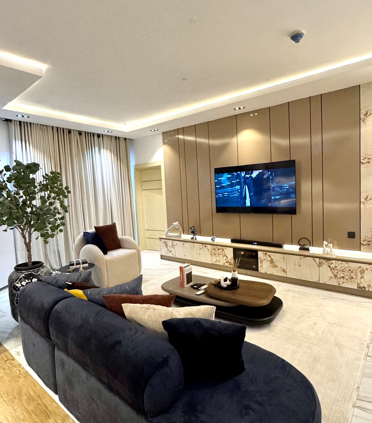 Inspired by NewYork and Dubai High rise Luxury, This 2 bedroom apartment located at the heart of Victoria Island is a first of its kind and offers a unique experience to travelers looking for something different from the norm. With breathtaking water views from the comfort of your room and scintillating magical Ikoyi skyline at night, Your stay in Lagos, Nigeria is poised to be as exciting as ever. amenities like Ps5, swimming pool, tennis court and much more are all at your beckon.