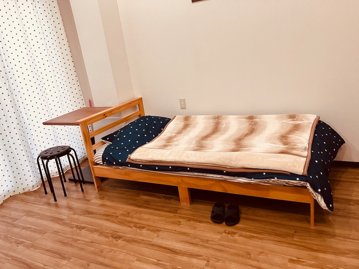 Newly built with travelers in mind. The rooms are spacious with Queen size beds (practically unheard-of in Japan). Smart TV, Wi-Fi, tea and coffee. The bathrooms are fashionable, with large walk in rain showers. LED mirrors to get you ready for whatever lighting you will encounter. Rooms have a bar fridge, microwave and kettle for you to store and prepare ready-made meals and drinks. All rooms come equipped with Air-conditioning, ceiling fans and black-out curtains. Ample storage space also!