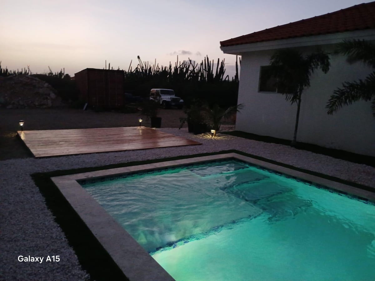 带厨房和游泳池的温馨家庭小屋