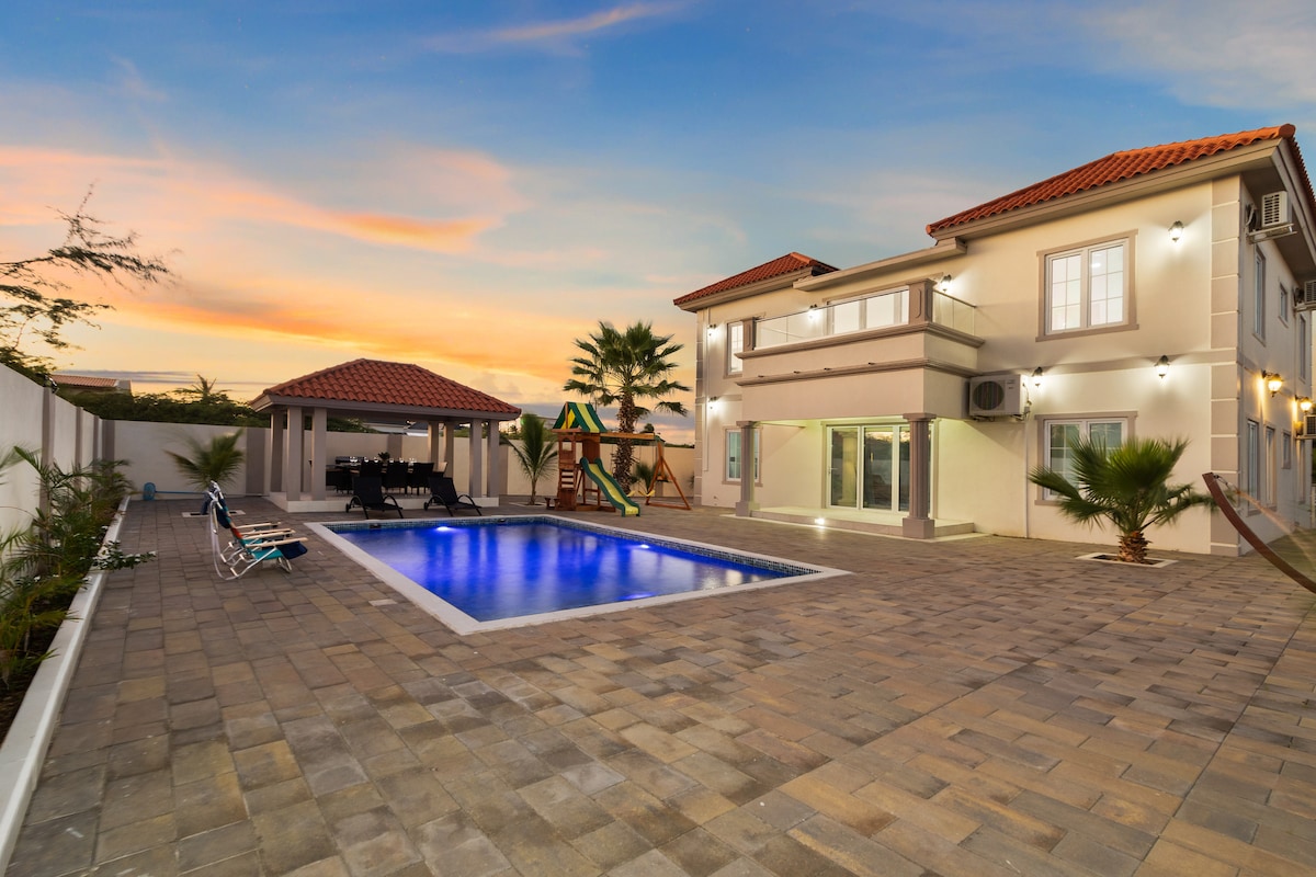 Welcome to our brand-new villa in Palm Beach, Aruba, a perfect getaway for up to 10 guests. This stylish and luxurious home is close to the beach and offers a private pool, mini golf, kids' swings and slide, and a game room, making it ideal for families. Enjoy local attractions and have an unforgettable vacation. Experience true relaxation and comfort in paradise!