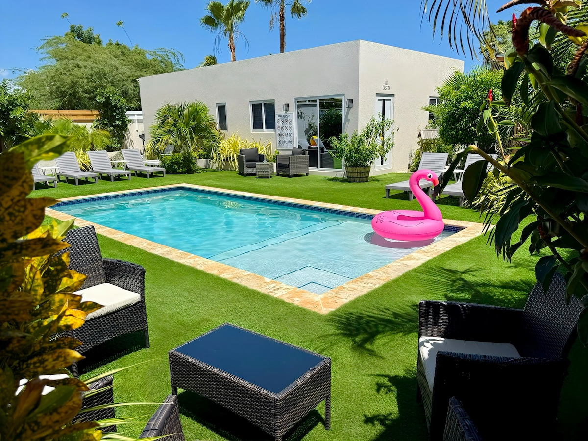 Escape to our Mediterranean villa and enjoy the white sands of Aruba the happy island, stay in the luxury apartment with the best comforts of a Caribbean home, located right in the pool area. THE BEST LOCATION *Palm Beach 400 meters walking *Noord Supermarket 350 meters walking *Restaurants area 4 minutes drive *Only 4 min driving from the area of restaurants, nightclubs, ares and shopping. ~CHILDREN ARE WELCOME.