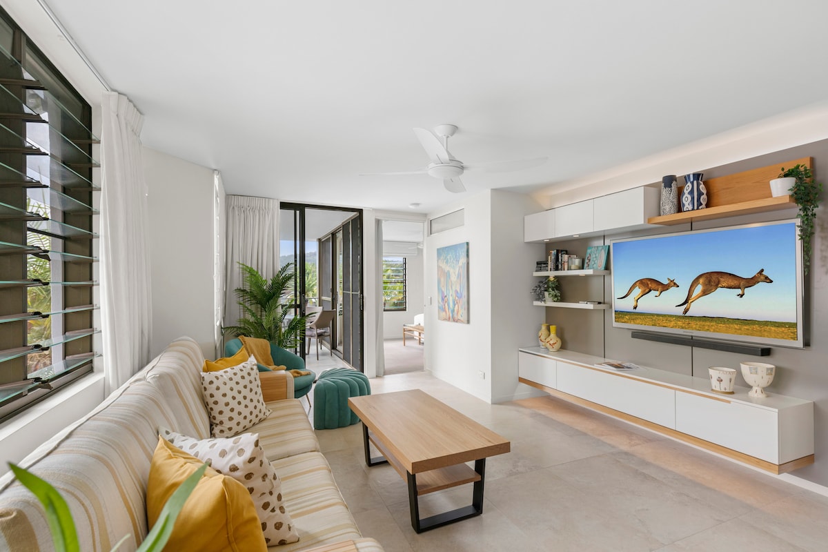 Romantic beachfront apartment with panoramic views over Coolum’s bays. Linger longer over ocean sunrises, soak in the bath as waves roll in, or enjoy coffee on your private balcony above the surf. Perfect for a few slow days by the sea, this modern open-plan retreat blends luxury and comfort in a peaceful coastal setting. Wander the scenic boardwalk, explore hidden beaches, and stroll to local cafés. Unwind on the sand at First and Second Bay, just steps from your door.