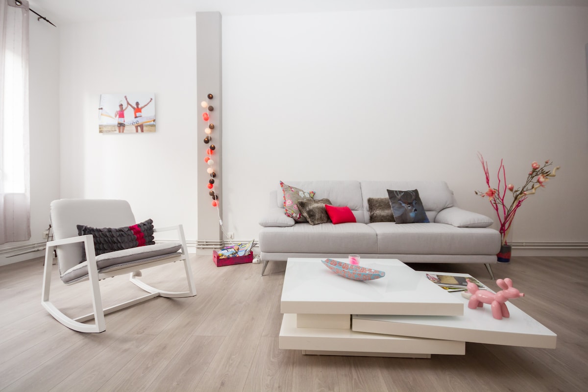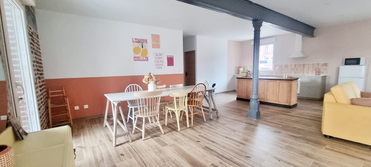 ✨ Bright 250 m² loft located in the heart of Downtown Douai, perfect for up to 6 guests — ideal for both leisure stays and business trips. 📍 Prime location, just steps from shops, restaurants, and historic landmarks. 🌇 Spacious 50 m² rooftop terrace, ideal for relaxing or enjoying a drink outdoors. 🛋 3 bedrooms, large living area, fully equipped kitchen, modern bathroom — comfort and space guaranteed.