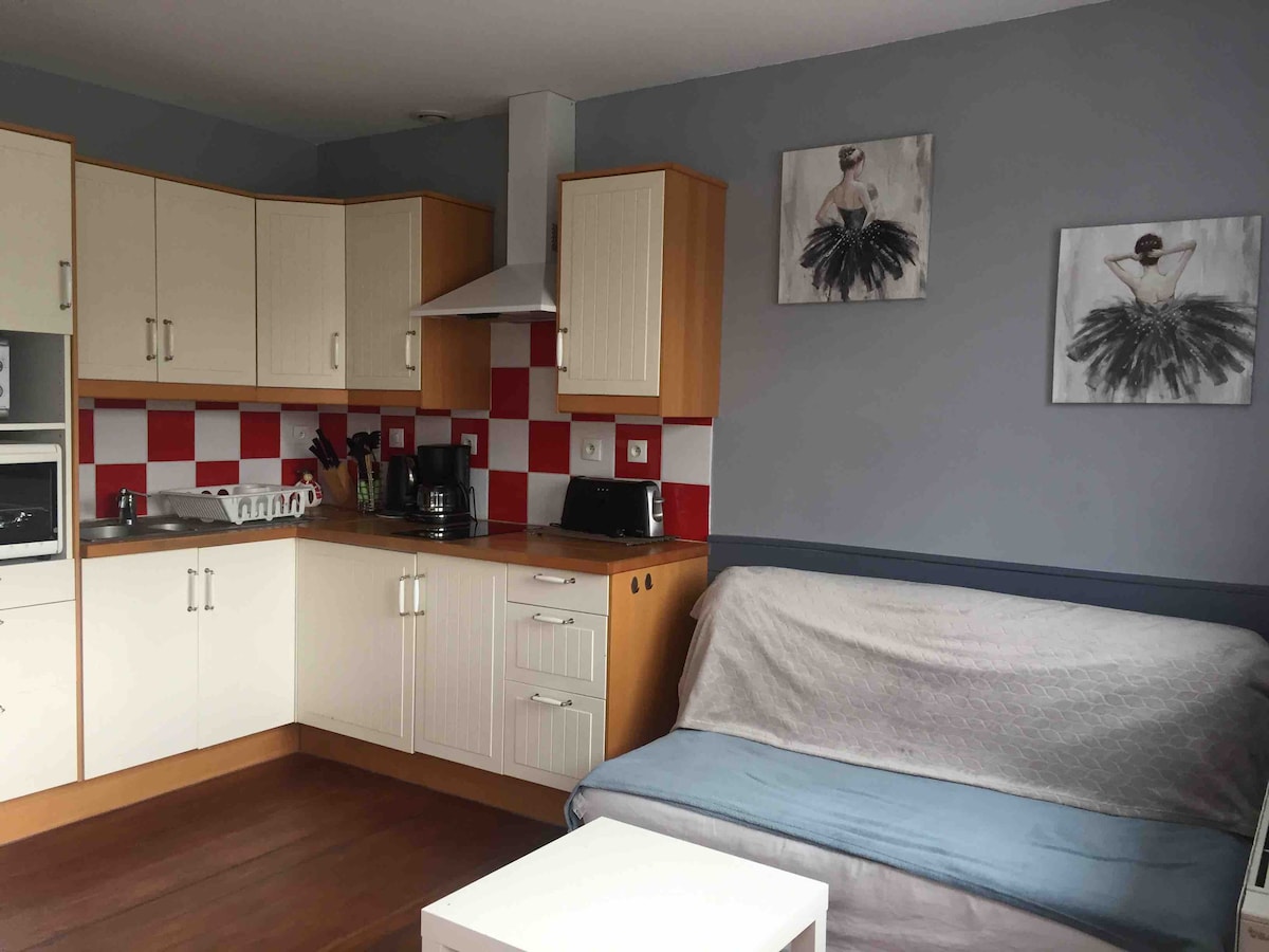 Charmant logement paisible et central, au cœur de St Amand les eaux proche de la forêt Amandinoise. Vous y trouverez un logement plein pied avec une chambre (lit 160), une salle de bain avec douche, toilette séparé et une cuisine équipée et un coin salon avec un canapé convertible. La terrasse est plein sud et privative, avec la possibilité de stationner votre voiture sur un parking privé gratuit. Des vélos sont à votre disposition pour accompagner vos balades.