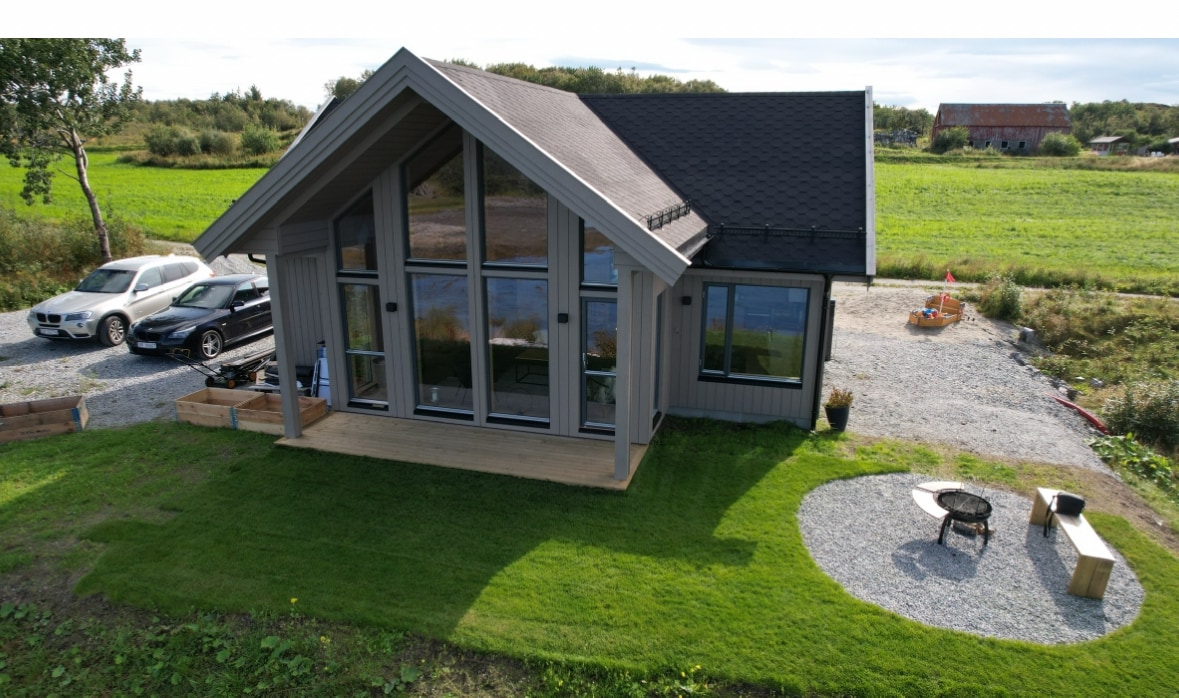 Fantastisk sted med unik beliggenhet og nydelig utsikt, rett ved vannkanten. Man har hele stedet for seg selv, 2 fine hytter med terrasse og store gressplener rundt. Nærme buss og sentrum, uten at du mister hyttefølelsen. Stille og privat, med vann og fjell som man kan nyte både dag og kveld. Begge hyttene har stue, bad med toalett, kjøkken og soverom. Dusj på ene badet. Ute er det flere spisegrupper, solsenger, daybed, trampoline, bålpanne og egen båt.