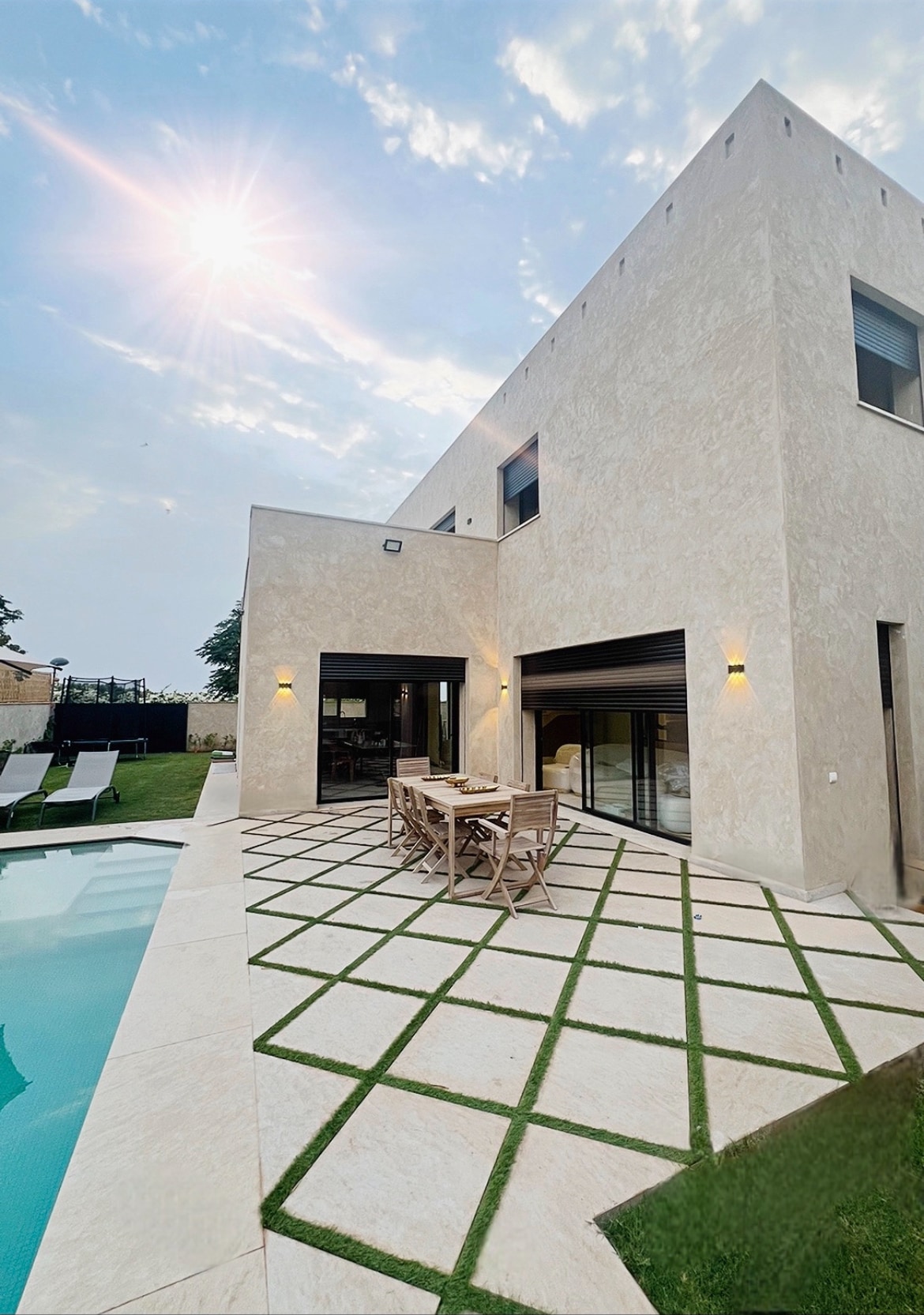 Venez découvrir le Lodge Dar Ikhwa dans le quartier des Golfs. Cette magnifique villa contemporaine est une véritable oasis de style et de confort pouvant accueillir jusqu’à 10 personnes. Chaque détail a été soigneusement pensé pour offrir une atmosphère élégante où le design moderne rencontre l’authenticité marocaine. La villa se compose de 5 suites dont 4 magnifiques suites de 17m², chacune équipées de leur propre salle de bains et terrasse privée. A l'étage se trouve la 5ème suite de 55m².