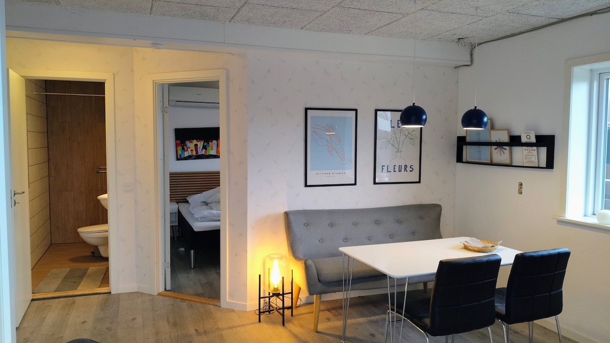 Nice apartment in the heart of Esbjerg. The harbour is nearby and you can reach the ferry to Fanø in 10 minutes. The apartment is located on the 2nd floor in a cozy townhouse, and it has all the things you need. You will have a fully functional kitchen, a work station, two bedroom, heated floors in the bathroom, dishwasher, and washer and dryer. The apartment has a shared pool and a garden shared with the two other apartments. Note the pool is only available during the summer period .
