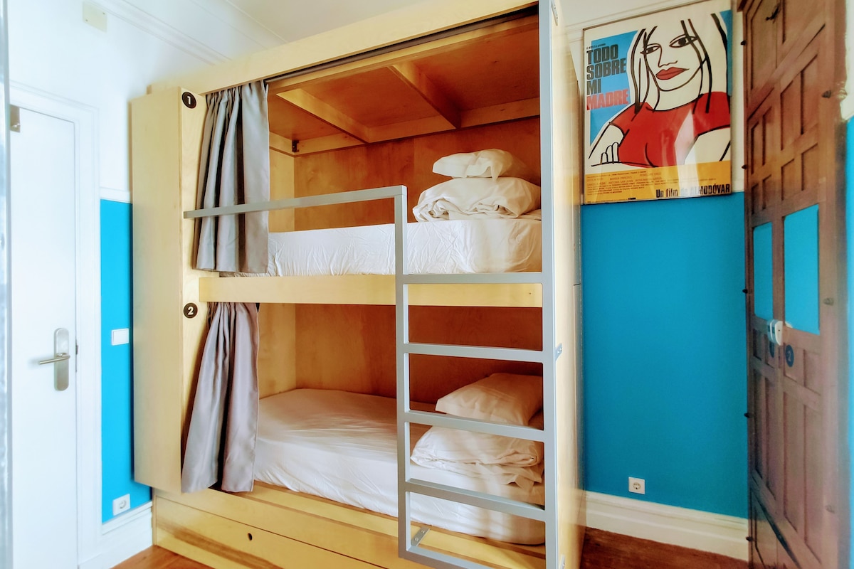 Enjoy one single bed (or more) in our spacious 6 beds dormitory with a shared bathroom. Each bed provides its own locker, personal lighting and plug. Pillow, duvet and linen are included, towels are available in extra. The shared bathroom is located on the same floor than the room. - 2 bunks beds (6 beds) *Non-smocking area / Adult only property (Triple Bunk Beds)