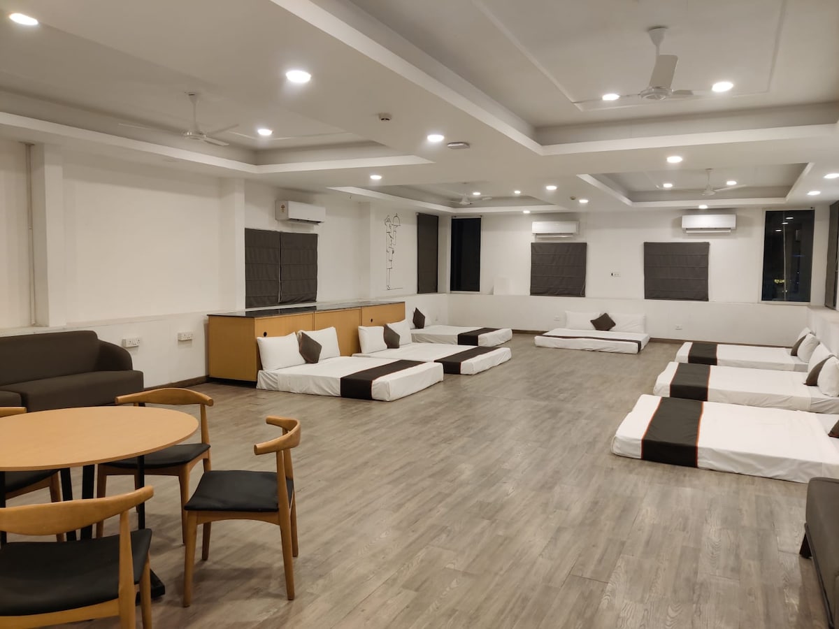 The whole group will be comfortable in this spacious and unique space situated inside a hotel. Mattress accommodation for 14 guests at the loft. Room service available. Additional rooms/mattresses chargeable Check-in Policy: 1. Guests must be 18 yrs (+) 2. Original photo ID- Aadhar, Driving License, Passport at the time of check-in. PAN card not accepted. 3. Check-in time - 6 PM Check out time - 11 AM Not allowed: 1. Foreigners 2. Pets 3. Extra Visitors 4. Illegal items