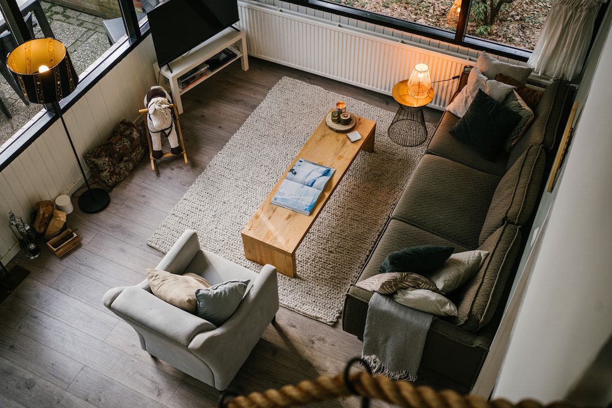 Dit gezellige houten chalet ligt in een bosrijke omgeving die uitnodigt om te ontspannen. Gelegen in het groen is het de ideale bestemming voor rustzoekers en buitenmensen. De royale tuin biedt veel privacy zodat je volledig kunt genieten van je eigen stukje natuur. Maak je verblijf extra ontspannend met een privé sauna! Extra kosten: €20 per nacht. De sauna is uitsluitend per volledig verblijf te boeken en kan niet voor losse nachten worden gereserveerd. Betaling kan alleen via Airbnb.