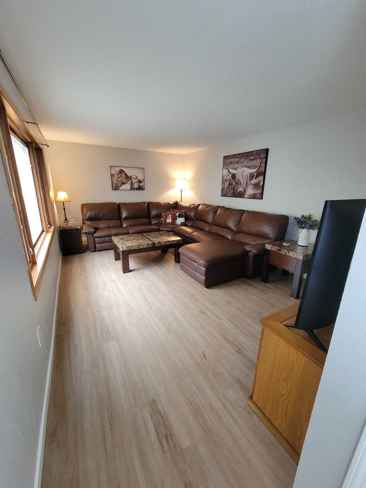 Welcome to the heavenly hideaway apartment located in Jamestown, ND. This completely remodeled 1-bedroom/1-bathroom apartment is located in the lower level of our home and features its own walk out entrance. This unit has a large living space and kitchen/dining area that comes fully stocked with any kitchenware you may need to prepare a meal. The bathroom includes both a shower and soaking tub. No Pets Allowed. The couch could sleep an additional guest.