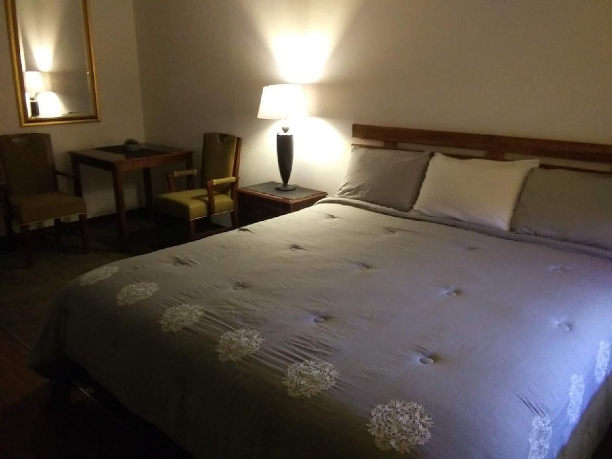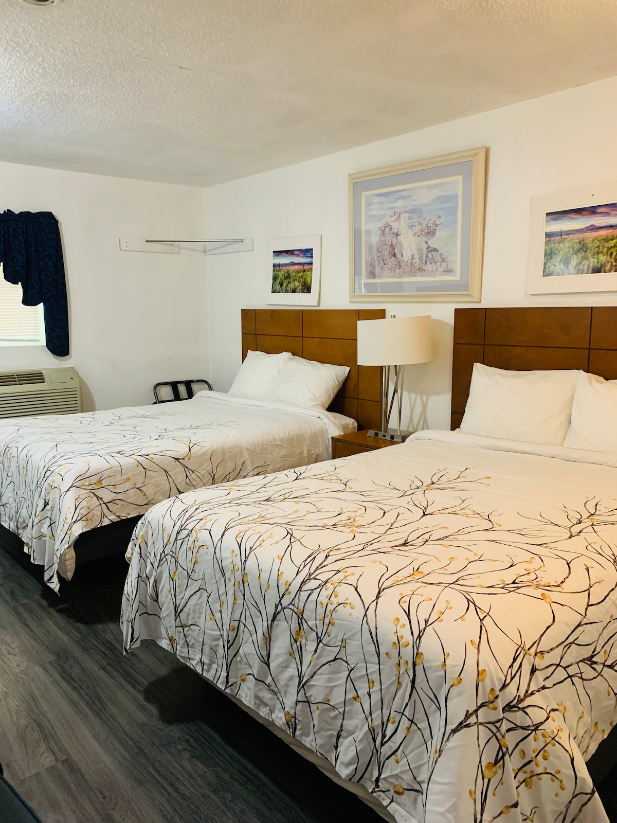 Our Studio style hotel room has new flooring and furniture. There is a queen bed, mini fridge, side table, microwave, toaster oven, dresser, Wi-Fi, cable tv, and a chair. Plenty of room to park trailers and a backyard space for everyone to use! We do require photo ID to be sent via Airbnb messages to verify your identification before you're able to access the property.