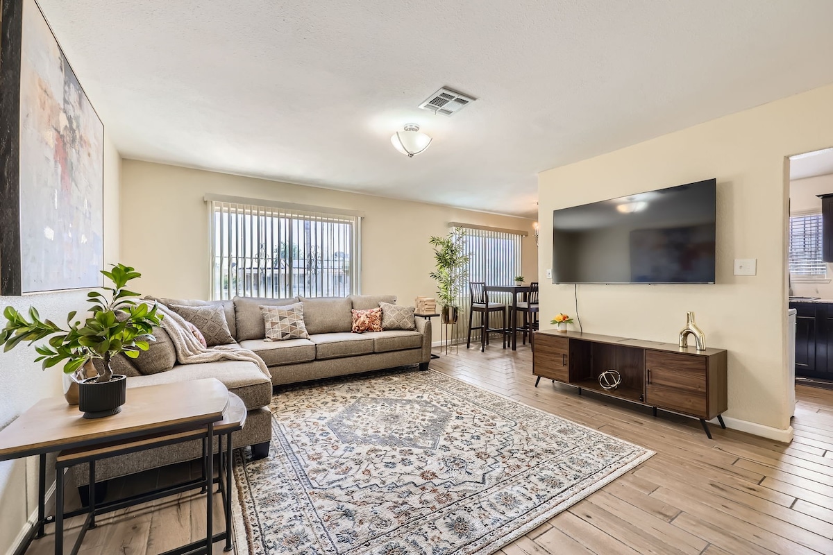 Modern vacation / work from anywhere getaway in fabulous Las Vegas, only 6 miles from Downtown! Relax in comfort in our stylish airy home with king retreat & en-suite spa bath experience in main bedroom. Outdoor relaxation awaits in our lush oasis yard of mature landscaping with hammock, dining, conversation area, fire pit. Our bright home is close to everything you want to do in LV: nature, shopping, gambling, nightlife, fine dining, we have it all in the entertainment capital of the world!
