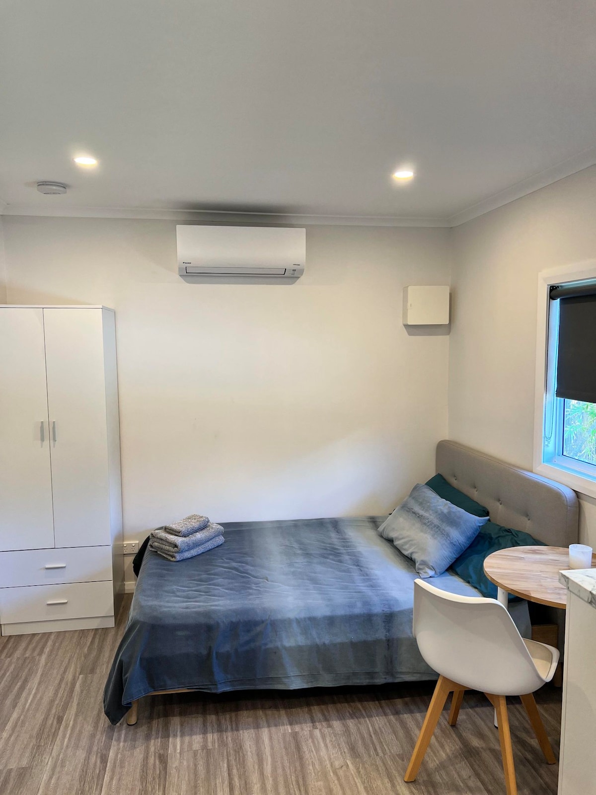 This unique and tranquil getaway is located alongside the butterfly rainforest. Enjoy interacting with the wildlife including koalas and wallabies in their natural environment. Only 300m to pubs, cafes, restaurants, bus, beach and some of the island’s most spectacular bushwalks. Your accommodation is ideally suited for 2. This newly built granny flat is attached to a garage at the rear of the block with its own private entrance.