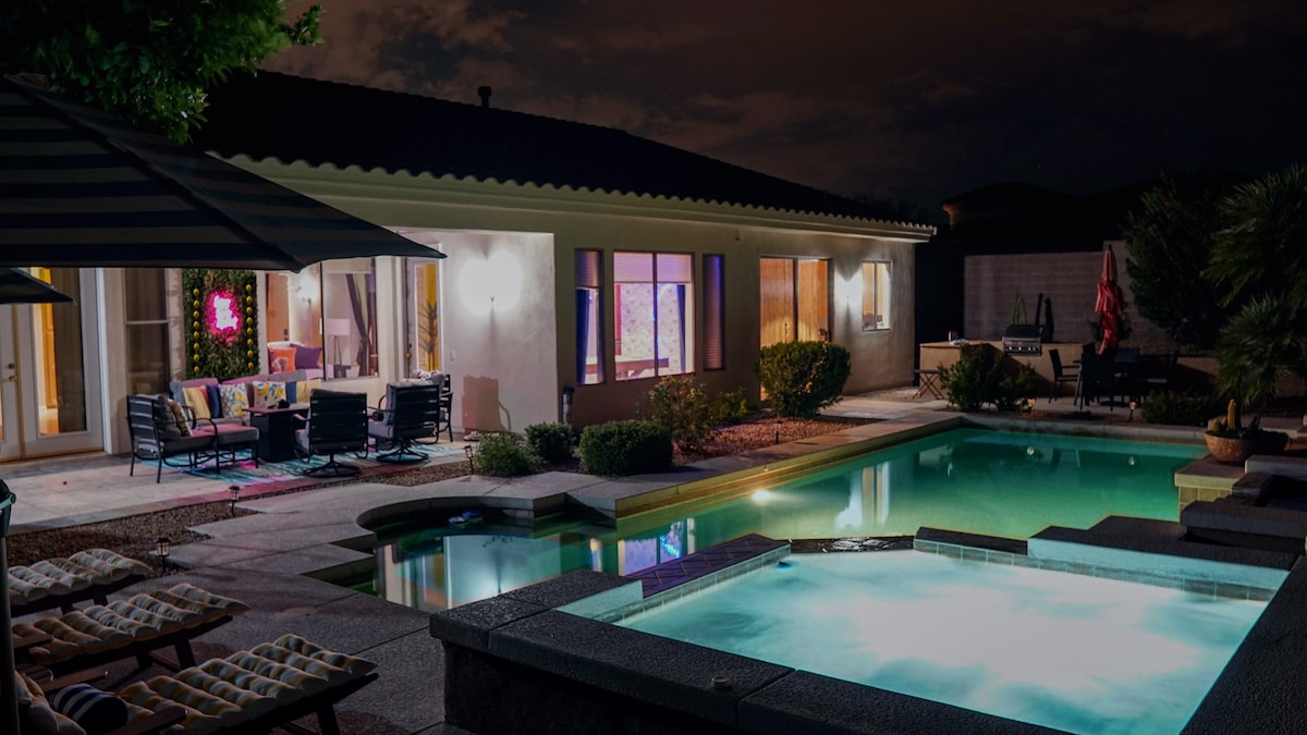 Welcome to The Hidden Hacienda Scottsdale! A fun, whimsical retreat with cowboy-chic decor, pool, spa, karaoke, and games—perfect for bachelorettes, families, or golf getaways. Sleeps 10 with comfy beds, smart TVs, a pool table and a fully stocked kitchen. Lounge beneath swaying palm trees, practice your swing on the mini putting green, or unwind in your private backyard oasis with cozy seating fire-pit and outdoor tv. Minutes to Kierland Commons, top golf courses, Spring Training and more!