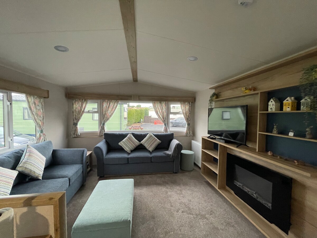 Relax and unwind at this luxury lodge. Including everything you need for the perfect stay. Bed linen, robes, towels, fully equipped kitchen with Ninja foodie, Smart tvs in every room, air conditioning, Fibre WIFI, Large bluetooth hottub, patio heater, gas bbq, private parking. This is the perfect couples retreat . 1 BED SLEEPING 2. Please NOTE the fire is not a log burner It is electric and the logs are for decorative purposes only.