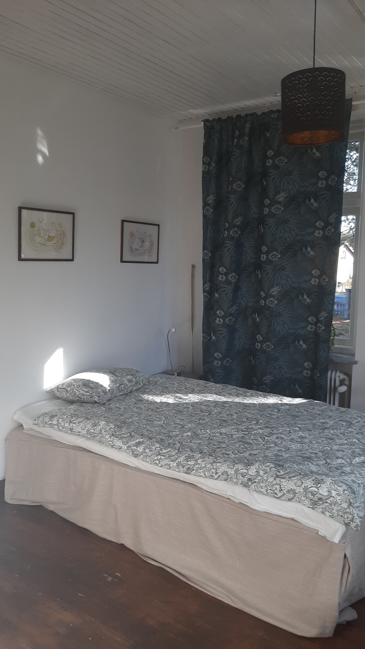 Jupitervej B and B Hornbæk is located on the edge of Hornbæk and therefore it is quiet with lots of birdsong. This room is room 1, there is another if you are a couple of friends traveling together. In the hallway there is a refrigerator with freezer. The rooms are tastefully decorated in nice materials. Distance to the sea and forrest is short and if you feel like you can rent a bike and go exploring. You can park at the house and enjoy the garden. You can order breakfast if you like.
