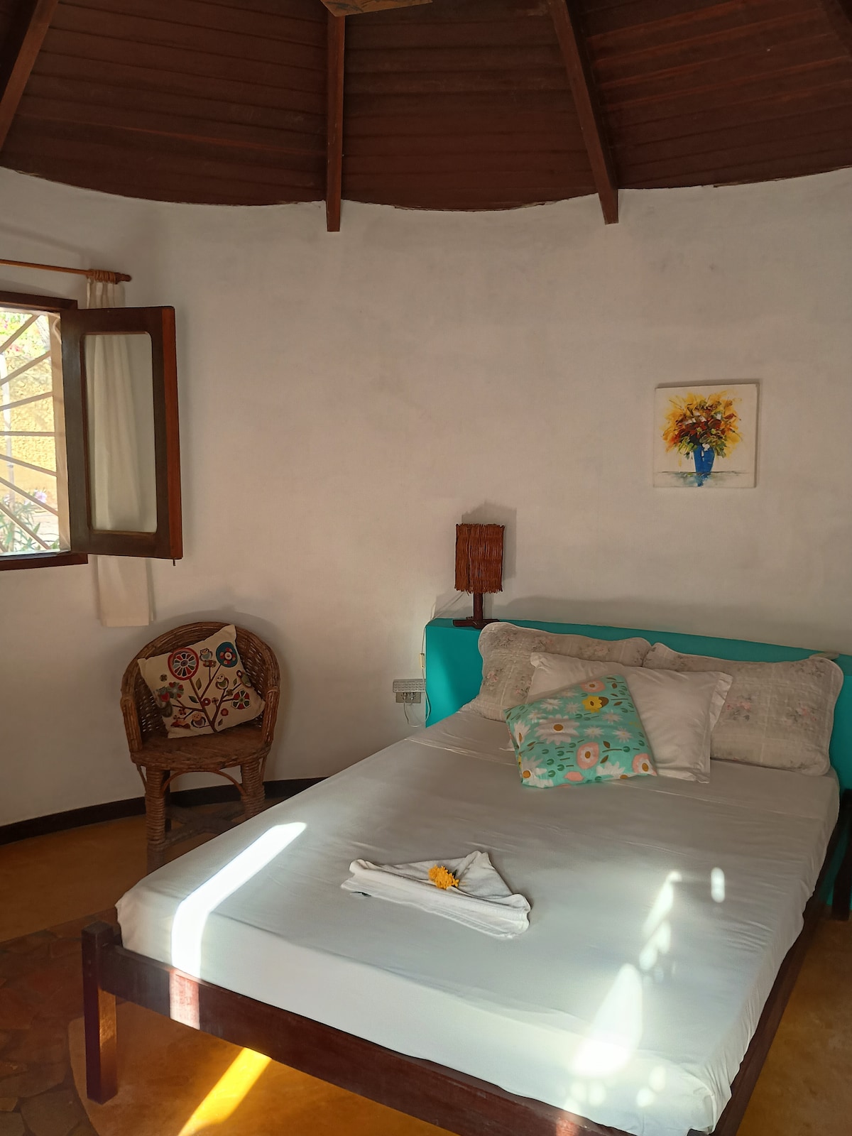 The boutique experience Discover this colorful, artistic getaway overlooking the Bay of Todos os Santos. Enjoy exclusive access to the third floor featuring a cozy bedroom, stylish living room and a small open-air kitchenette. Relax on the roof top with a tub and open-air shower while enjoying breathtaking sunsets. You’ll be sharing the rest of the house with my family, 2 friendly dogs & 2 cats. We offer a delightful breakfast in the main kitchen.