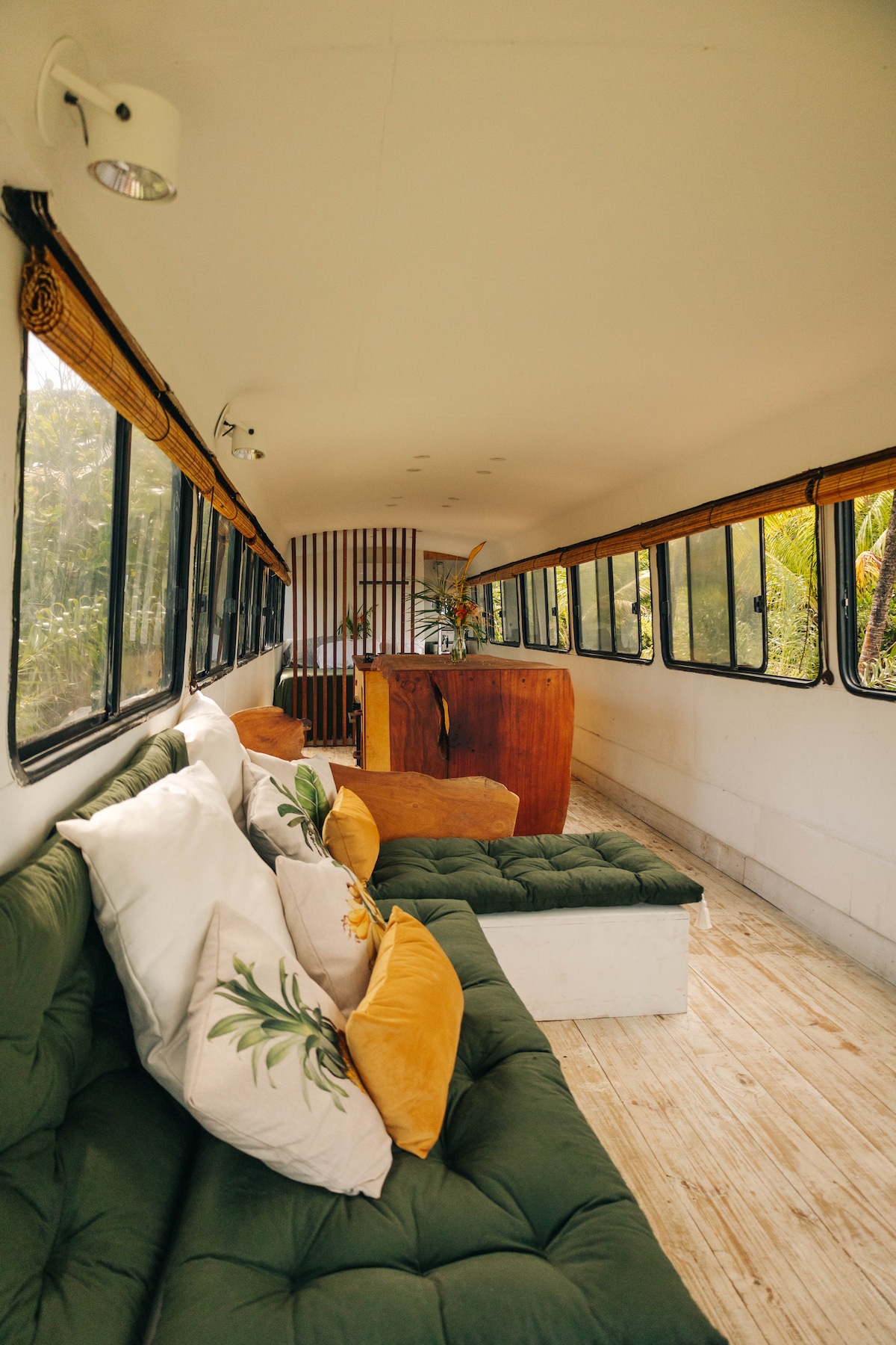 Experiência única de hospedagem em um ônibus, pé na areia das mais belas praias do Brasil. Localizado na exclusiva praia dos Arandis, 5 minutos a pé pela praia até os bares e restaurantes de Algodões. O ônibus recém reformado está situado no Sítio Pura Vida, são 5.000 m² de natureza, uma das poucas propriedades que ainda conta com uma área de floresta nativa, com fauna e flora exuberante.