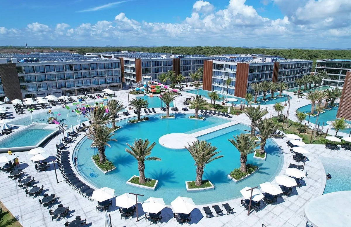 Up to 4 guests! Pet Friendly! Muro Alto/Porto de Galinhas, facing the natural pools with exclusive beach access. Comfortably accommodates up to 4 guests. Located in the best area of Muro Alto, with calm, crystal-clear waters perfect for families and children. • 1 queen bed + cozy sofa bed. • Accepts up to 2 small pets (extra resort fee per stay). • Pools, spa, sauna, gym, 24h restaurant, and daily activities for adults and children. • Parking included.