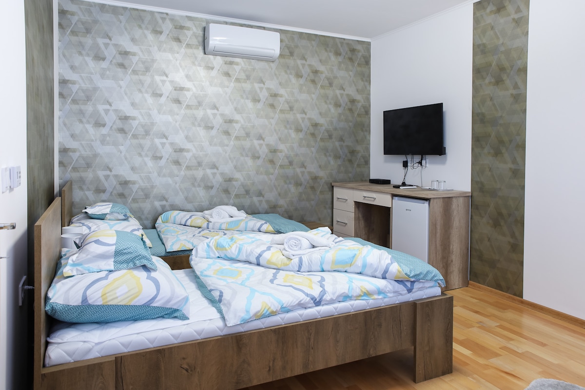 Parking Option: 1 min walk from the building , a private, guarded car park. 10 euro/day for 1 personal car. Need to check availability and book in advance. PRIVATE ROOM: For max. 3 person: 1 double bed + 1 openable single sofa bed with topper mattrass. SHARED AREAS: kitchen, bathroom, dining room, WC1, WC2 Extra: Smart Washing machine, Basic Breakfast (Coffee, tea, cereals),T Smart net TV (Netflix / YouTube), fast wifi