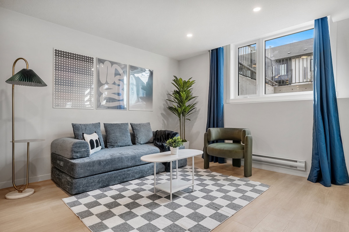 The second bed is the pull out blue chair. It’s Private ground level suite comes with everything you shall need for your cozy get away .. 10 min from downtown close to bus and hiking trails on nose hill park and other beautiful parks this area has to offer making this place unique .. Amazing skyline spots 2 mins from this private suit .. Offering you privacy and quite community yet minutes from the action of Kensingtons trendy upbeat shops and eats. Then 10 min to down town as well !