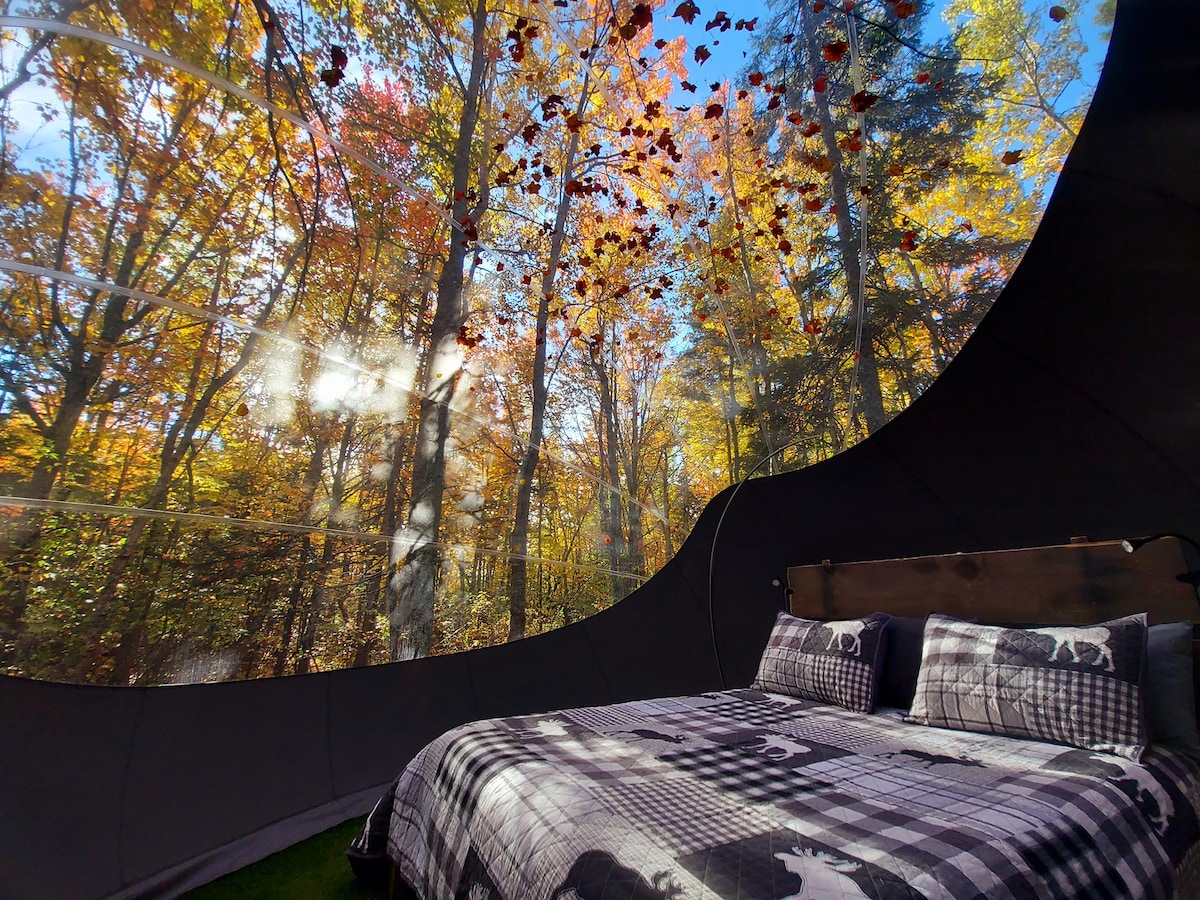 At East Coast Hideaway, we want you to unplug and connect with nature. The perfect escape from the city but still not far from restaurants and attractions. Come enjoy our private stargazer dome surrounded by beautiful maple trees, located on our 30 acres property. We are open all year round. The getaway is made for 2 adults. You will have your own fully equipped kitchenette, 3 pcs bathroom, wood fired hot tub, private screened in gazebo, fire pit, sauna and more! ATV & Snowmobile friendly!