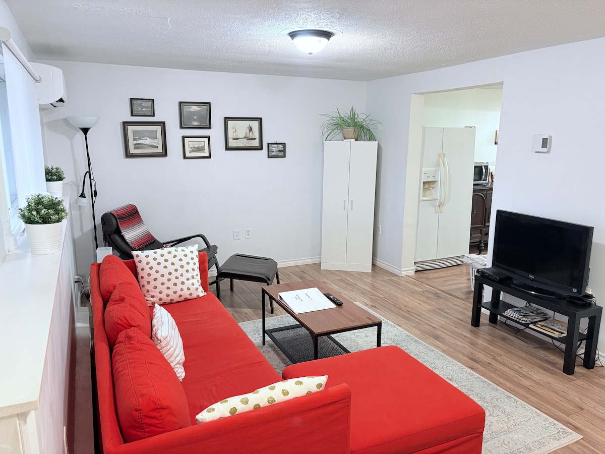 Newly renovated unit in west Saint John, walking distance to Bayshore Beach and Martello Tower with a view of the Bay of Fundy. Minutes from the Digby-Saint John ferry terminal, Irving Nature Park, and downtown, with several restaurants, pubs boutique shops and the historic City Market. Features electric fireplace, live-edge dining table and breakfast bar, treadmill and light gym equipment, and heated bathroom floor. The unit is steps away from a walking trail along Bay Shore.