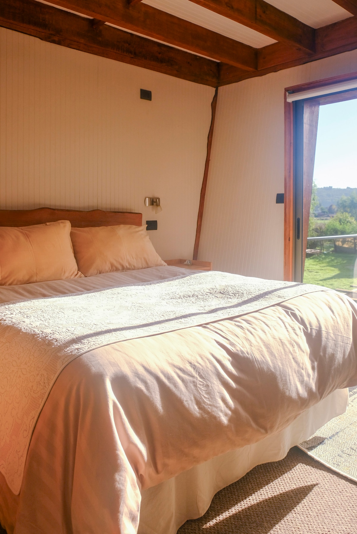 Encantadora habitación doble matrimonial en una casona colonial, con estufa a combustión lenta y baño privado en suite. Vista a jardines, piscina y corredor posterior. Incluye desayuno y acceso a quincho, piscina, corredores y amplios jardines. A solo 1,5 km de la Ruta 5.