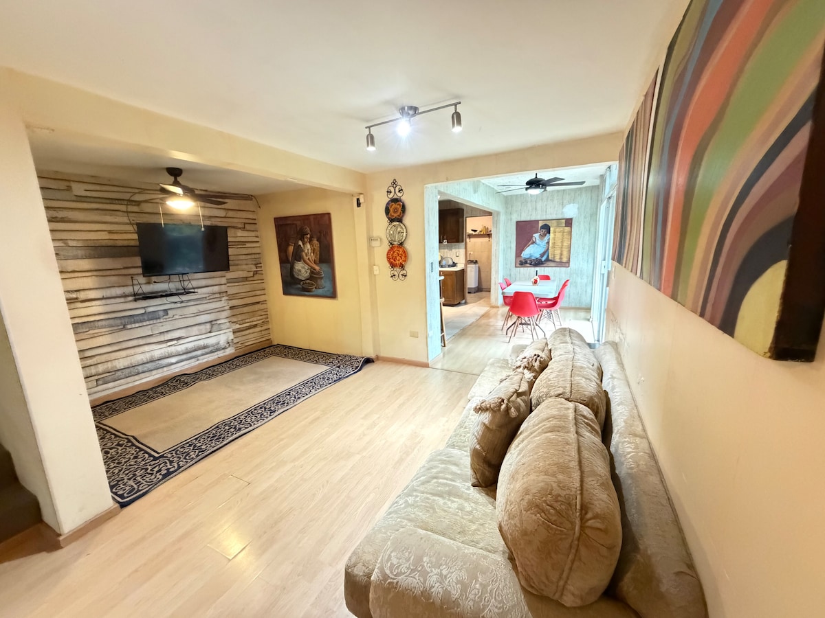 The house is spacious, exclusive for people who arrive, there is no one else, it has two good-sized rooms, a large kitchen, equipped for preparing food, a patio with a barbecue, a dining room and a living room with a smart TV, washing machine. When the number of people exceeds 10 guests, an apartment is set up at the back of the property with a king bed, sofa, TV, own bathroom and refrigerator, thus offering better service and comfort. The neighborhood is very quiet with an excellent location.