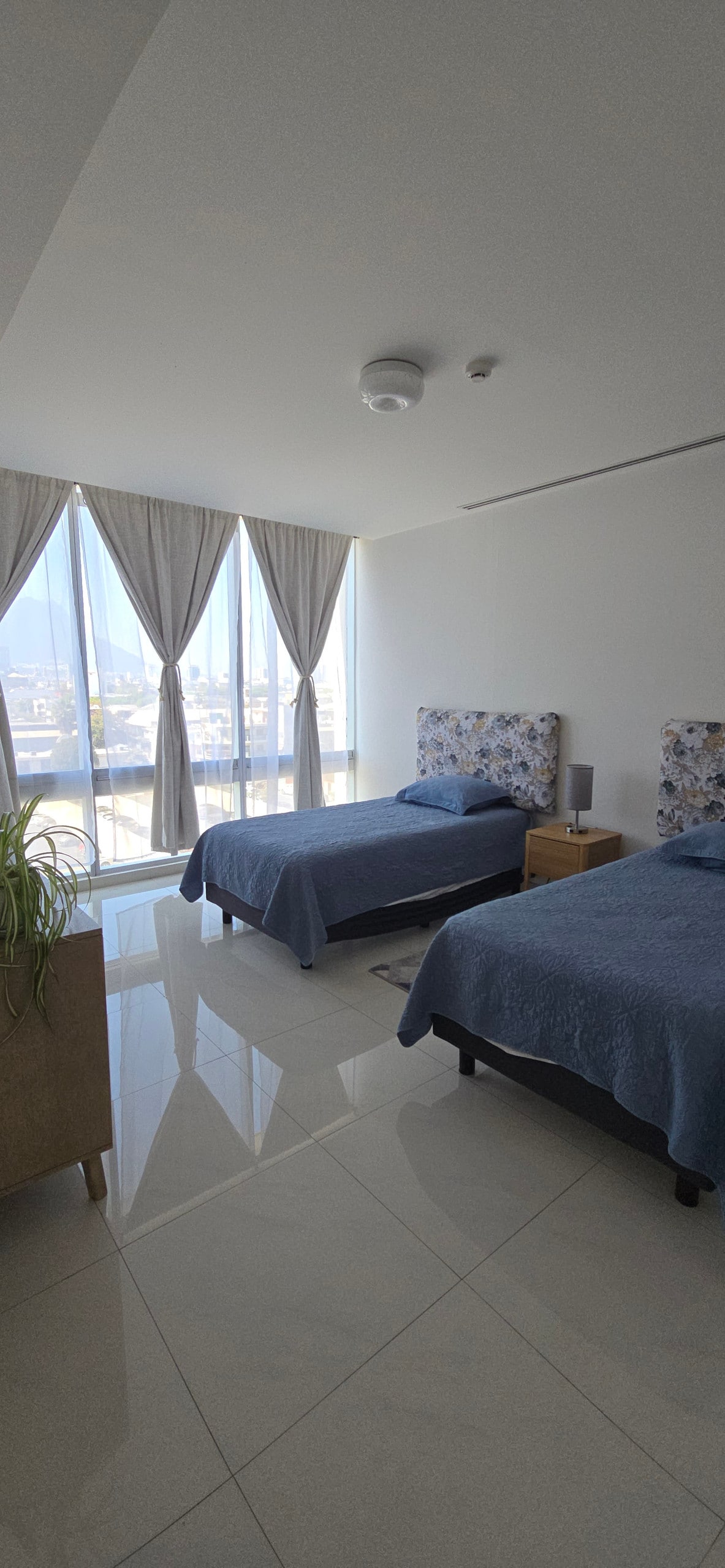 Nuestro departamento es totalmente independiente cuenta con area de alberca gimnasio y lavanderia en area comun Tenemos un sofa cama ademas de la cama matrimonial Estamos muy cerca del tec de monterrey, esfera, pueblo serena, nuevo sur, paseo tec y de galerias valle oriente, plaza fiesta san agustin y palacio de hierro ademas muy cerca de fundidora en carro estamos a 5 min Cerca de Cintermex, Arena Monterrey, Auditorio Banamex y Pabellon M No se permiten fiestas en nuestras instalaciones