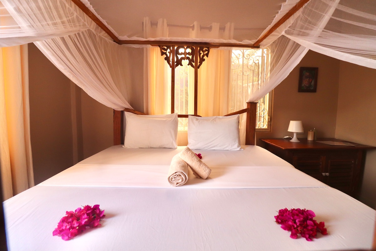 Notre maison de 2 chambres est située à 2 minutes à pied de la plage, avec un petit chemin direct en face du portail. Elle est fonctionnelle et dispose d'un joli jardin avec un coin terrasse aménagé. En 5 minutes à pied vous serez sur la place principale de Nungwi où vous trouverez des petits supermarchés, des souvenirs et plein de restaurants. Il s'agit d'un des meilleurs emplacement à Nungwi.