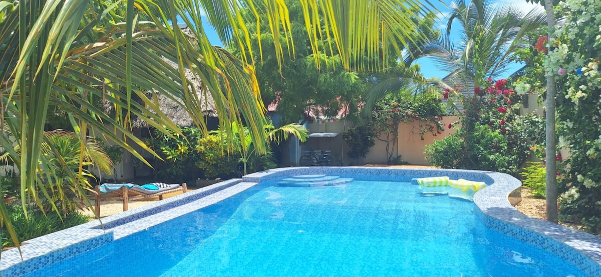 PROPERTY WITH BACK UP GENERATOR IN CASE OF ELECTRICITY CUT!Welcome to our beachfront apartment with Italian and Swahili style. It features a spacious kitchen, luxurious bedroom with king-size bed, ensuite bathroom, AC, private beach entrance, charming garden. Enjoy 24-hour internet, security, and a sofa bed for extra guests. Contact us for availability. Unforgettable stay guaranteed. Oh yes, we are now offering FULL BREAKFAST and COWORK ACCESS included in the price!!