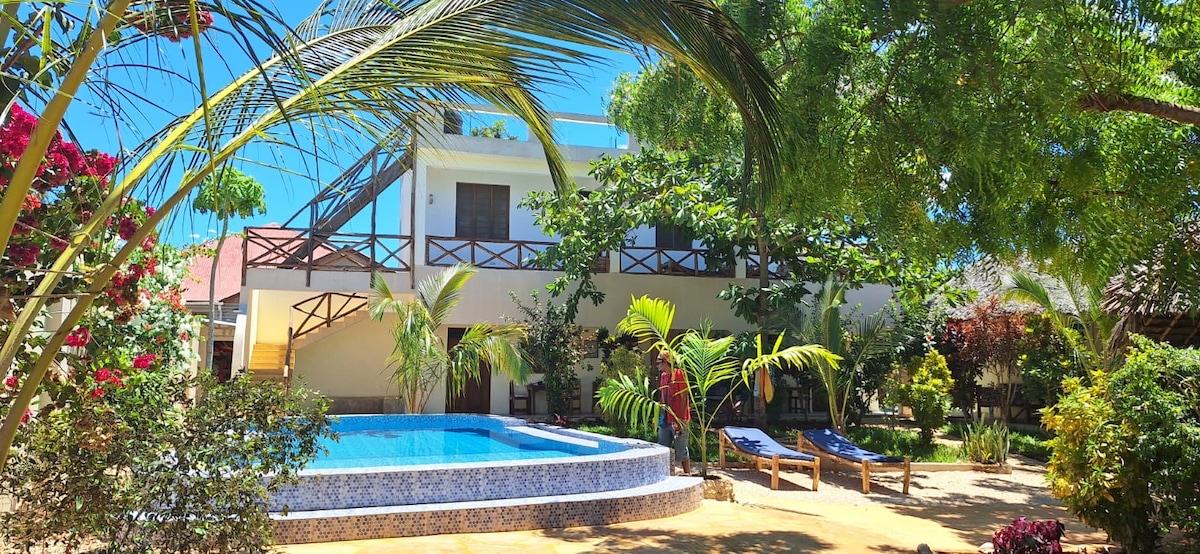 A lovely family house surrounded by beautiful garden with a lots of plants and trees. In the heart of Nungwi local village. This is a place than can make you relaxed. It is always good to mingle with the locals and this is the right place. The house is african style, spacious, with a big furnished patio, kitchen, two double beds room, one big living room (wit more one double bed) and bathroom.