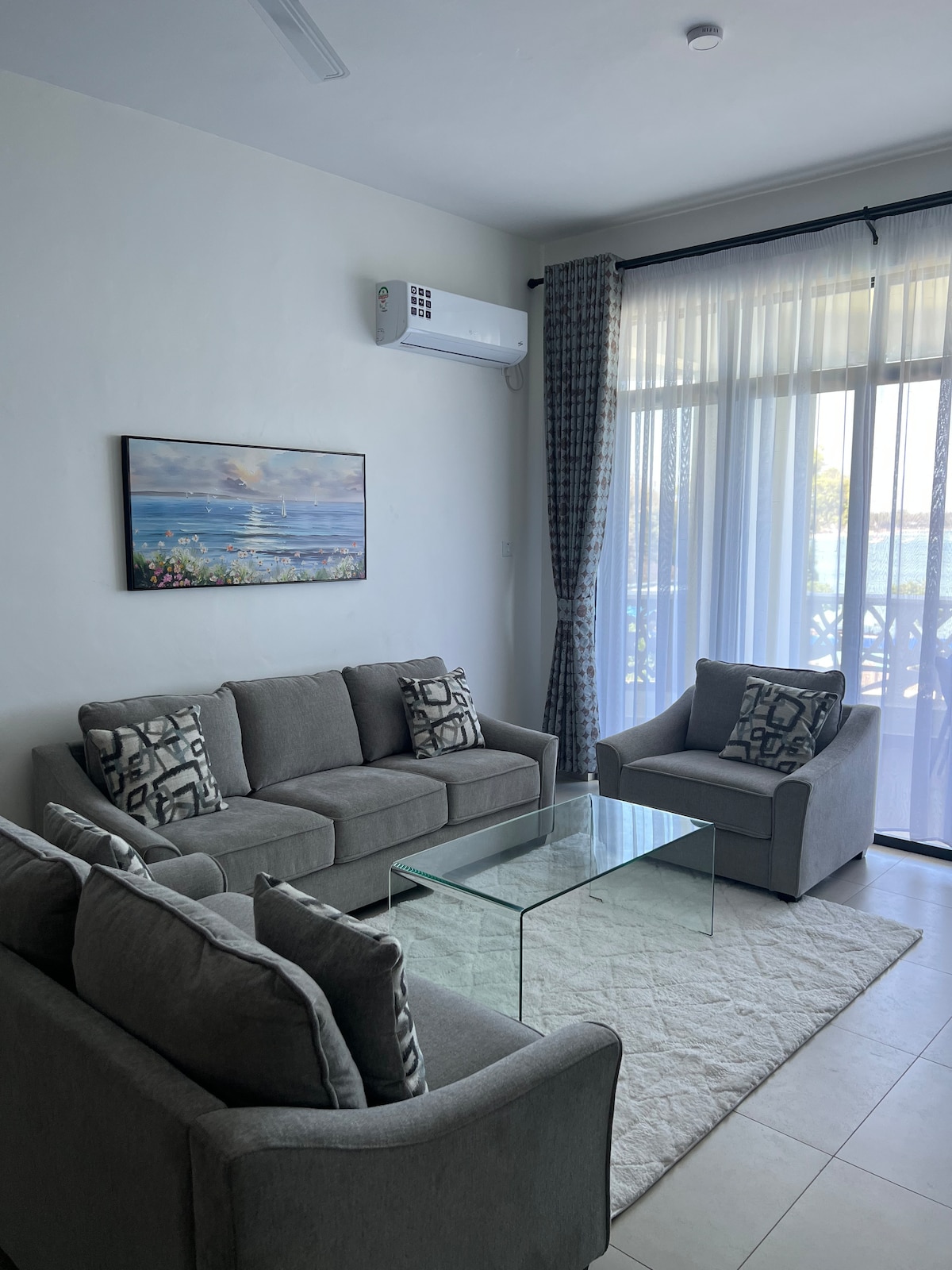 A stylish and peaceful 2 bedroom apartment in Nyali , Mombasa next to the beach. The apartment is a few minutes walk to the beach and it has a stunning view of the ocean from the balcony, its fully furnished; with 2 bedrooms, fully equipped kitchen and a beautiful living area opening to a balcony with an amazing view of the ocean. The apartment is located on the 4th floor and it’s a few minutes from Nyali mall and the city mall