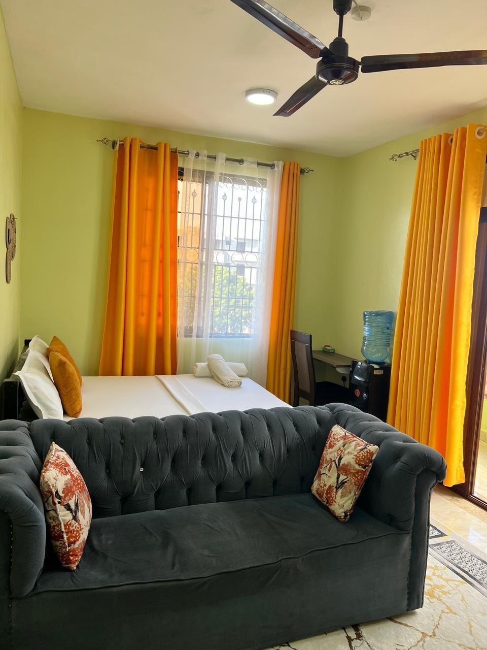Relax with the whole family at this peaceful beachfroont apartment, located on the ground floor The house fits 6 people Max. The beach is just few stroll, and the malls are close proximity like 8min. Our kitchen is fully equiped. Airconditionar in all rooms at a extra fee of 2000ksh per stay. For parents with young ones, our outdoor space is spacious enough for kids to play freely. We are just next to Toscana beach restaurant and we have contacts for food delivery right at our door step.