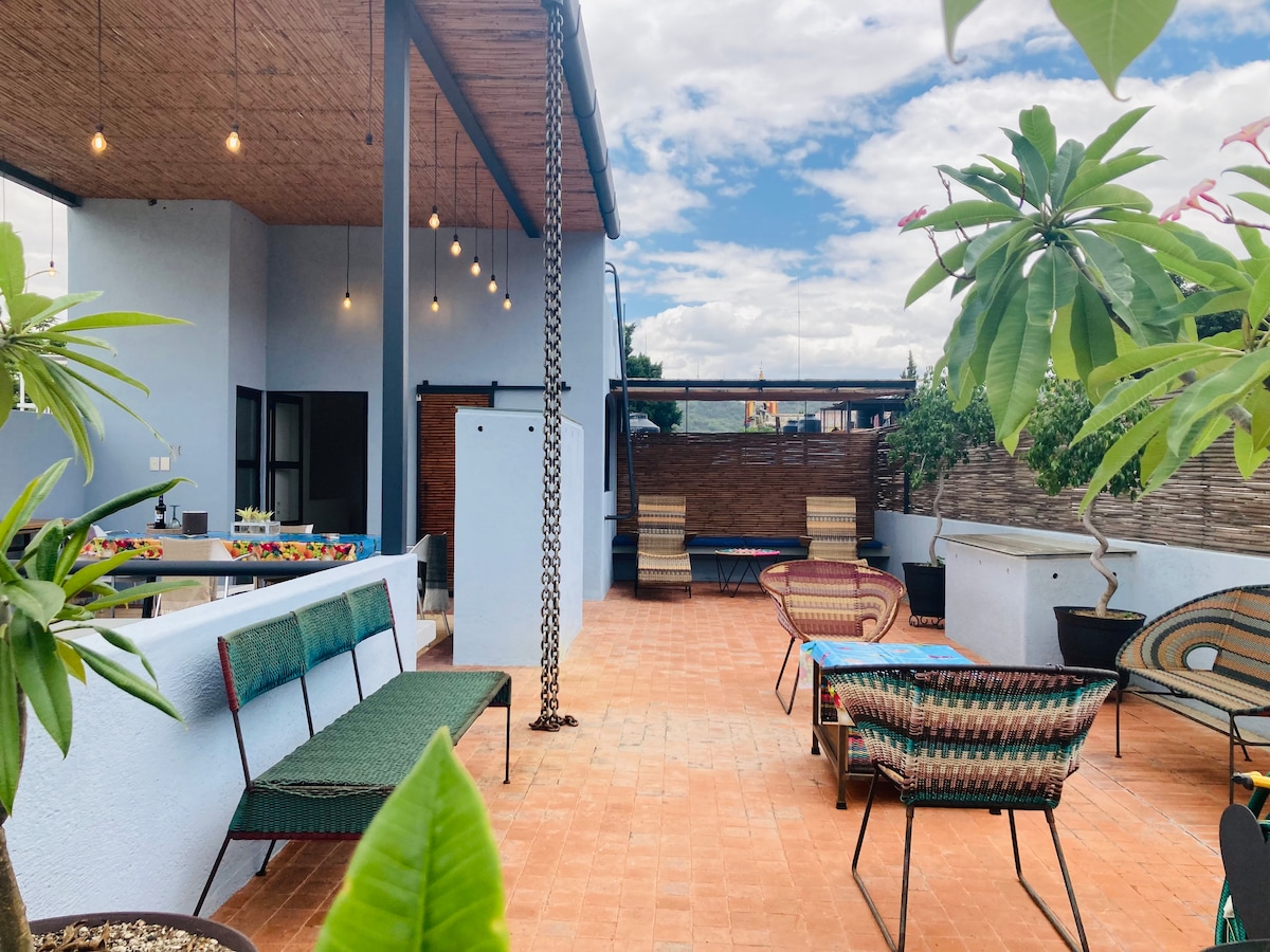 Discover SOLEDAD, a spacious 56 m2 private flat with a terrace, located in our boutique apartment complex. This two-bedroom suite features two private bathrooms, a dining room with a sofa, and a well-equipped kitchen. The highlight of SOLEDAD is its immense terrace, offering stunning views of the city and mountains. Situated on the second floor, it includes three 43-inch 4K TV screens and Wi-Fi. Located in Oaxaca's city centre, it is within walking distance of many attractions.
